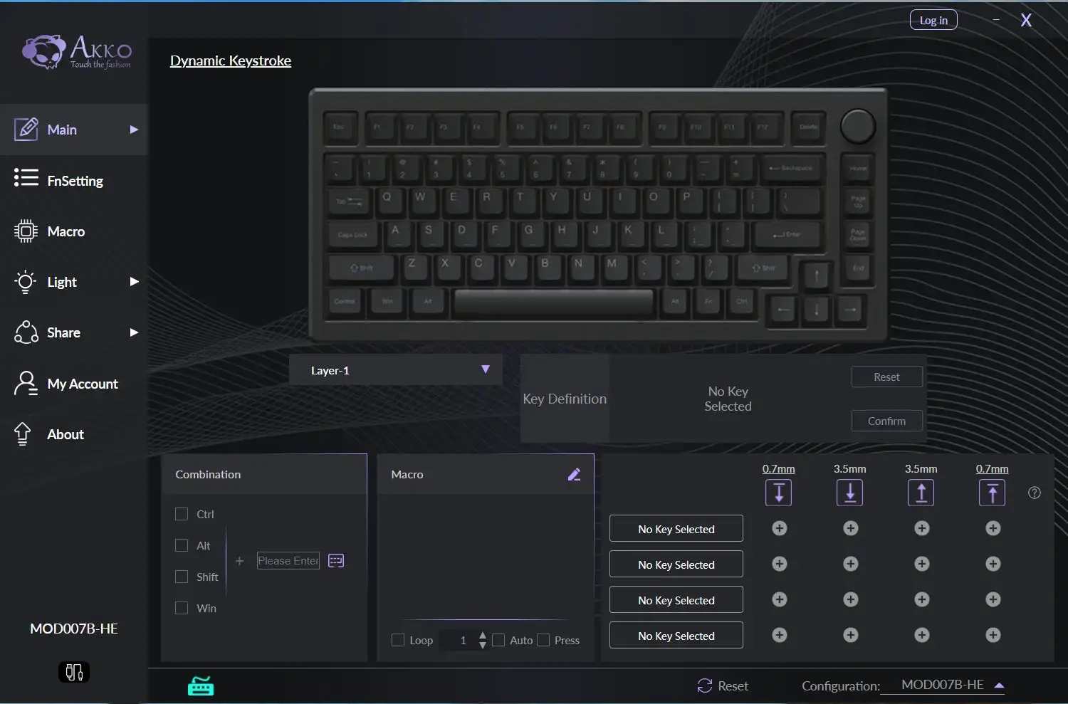 Le déclencheur rapide modifie dynamiquement les points d’actionnement et de désactivation des touches. Grâce au pilote Akko Cloud, les utilisateurs peuvent choisir «Tous les boutons» ou «Par bouton» pour personnaliser chaque touche avec une sensibilité ultra-précise de 0.1mm et des points d’actionnement réglables allant de 0.1 à 4.0mm, ainsi que pour activer le déclencheur rapide non-stop pour une réponse clé quasi instantanée. Cela donne aux joueurs FPS un avantage concurrentiel dans un gameplay rapide.