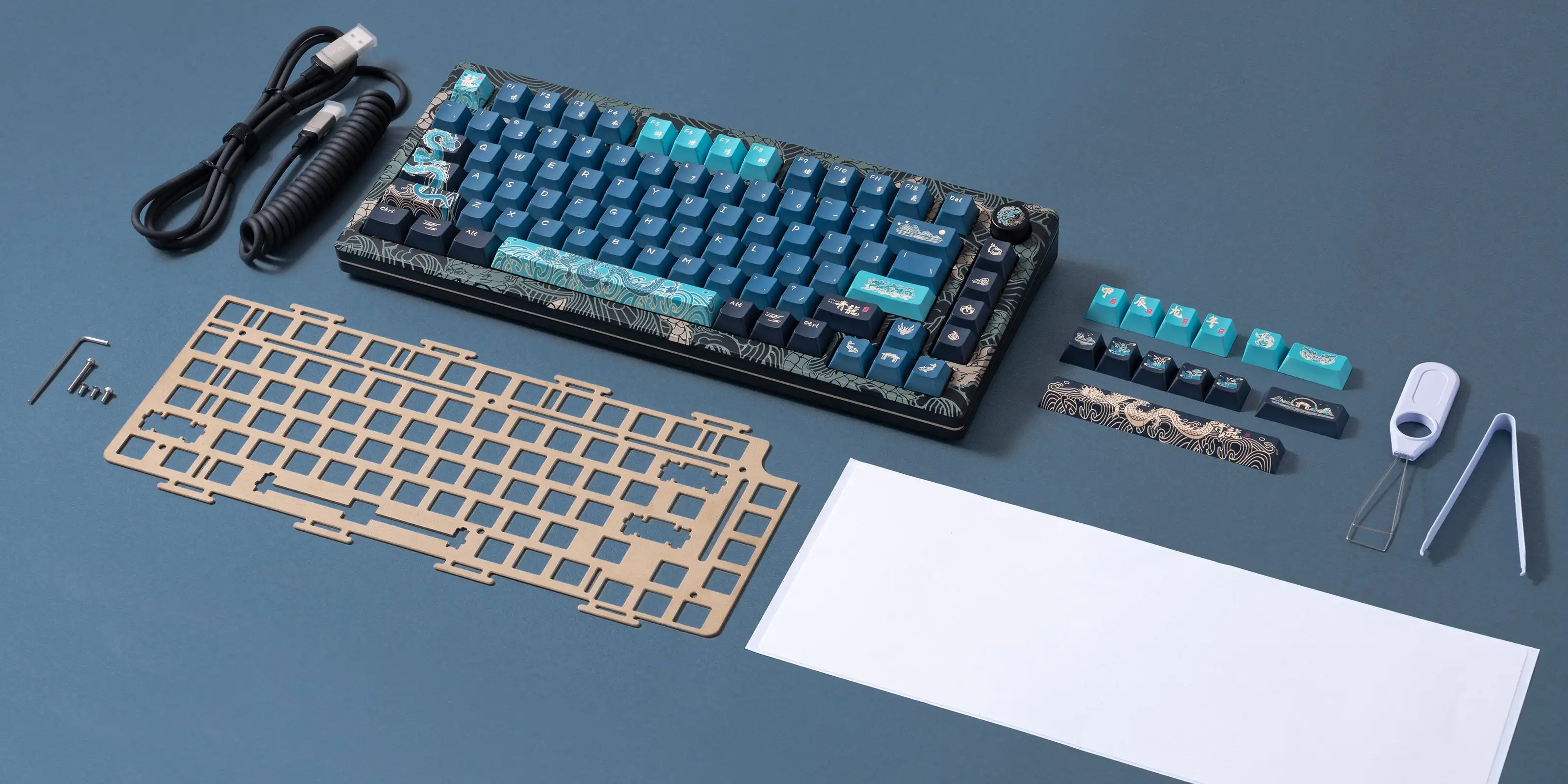 Utilisez une palette de couleurs cyan avec des éléments inspirés du «Dragon de l’année». Les keycaps PBT offrent une résistance exceptionnelle à l’huile, améliorant l’expérience de frappe globale tout en assurant la longévité de la visibilité des légendes.