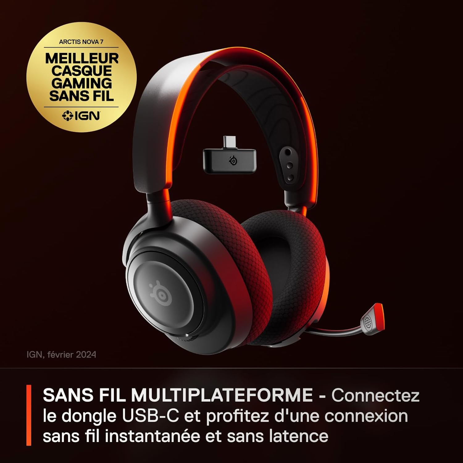 Arctis Nova 7 Wireless Casque Gaming Sans Fil multiplateforme- Haut-parleurs magnétiques en néodyme