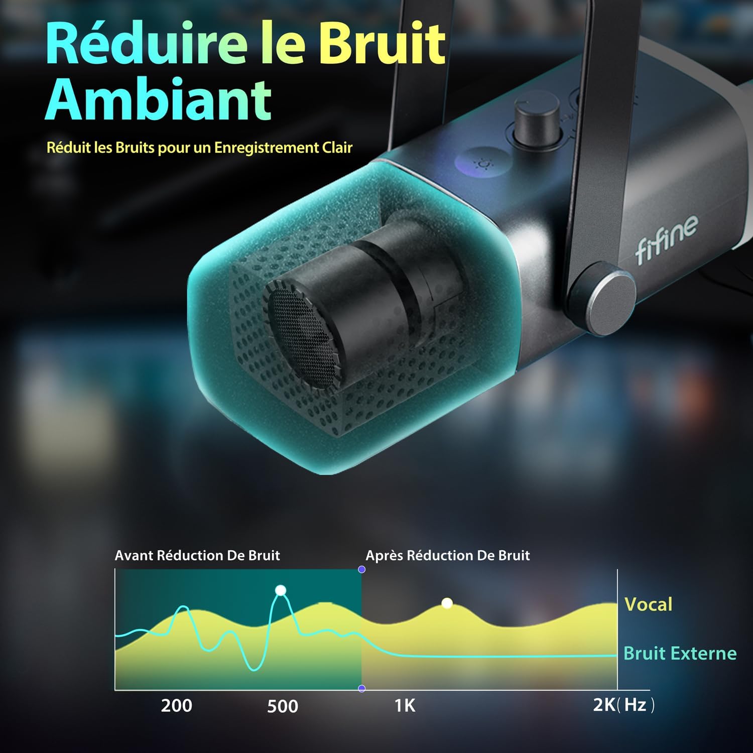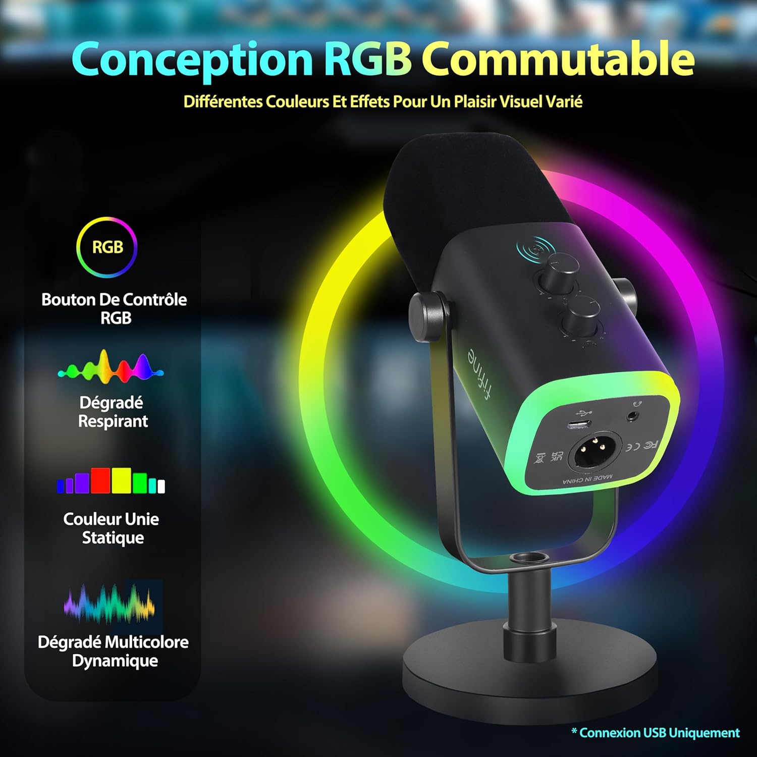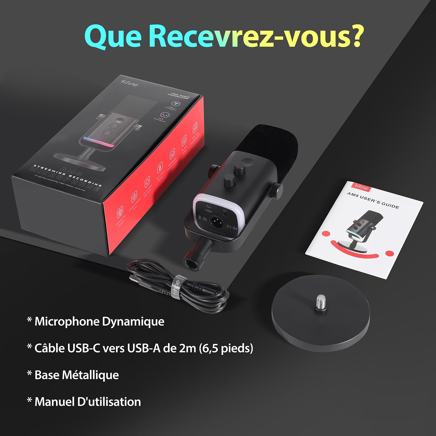 FIFINE USB XLR AM08 Micro Dynamique pour PC, RGB Streaming Microphone pour Podcasting,