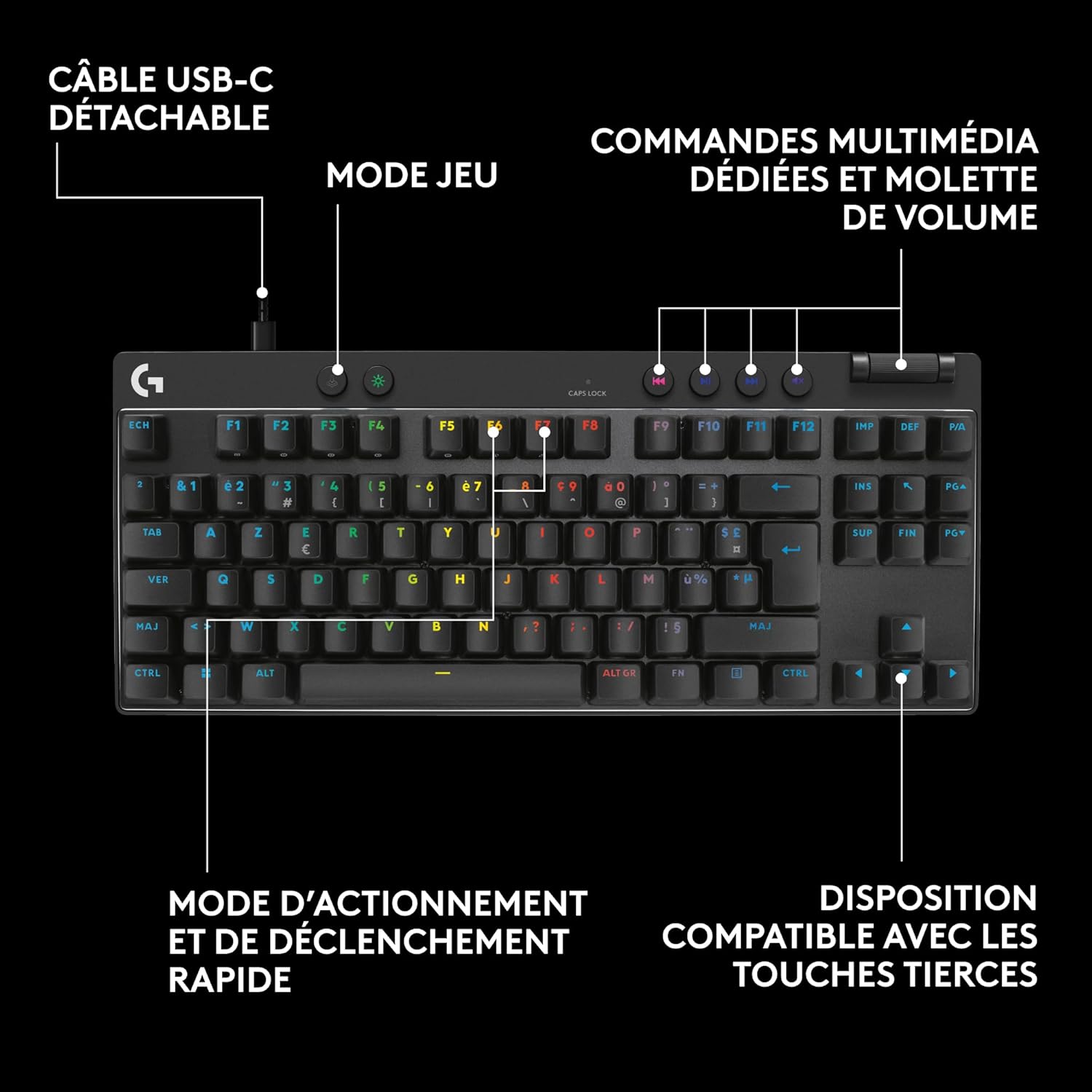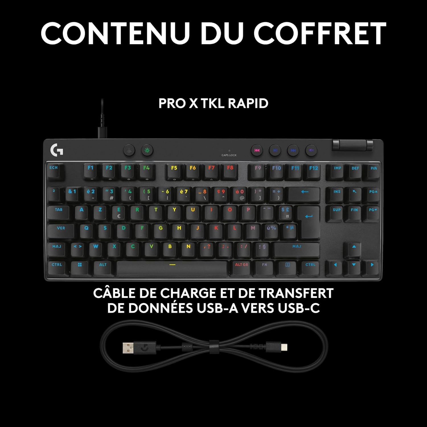 Logitech G PRO X TKL RAPID, clavier gaming filaire sans pavé numérique touches