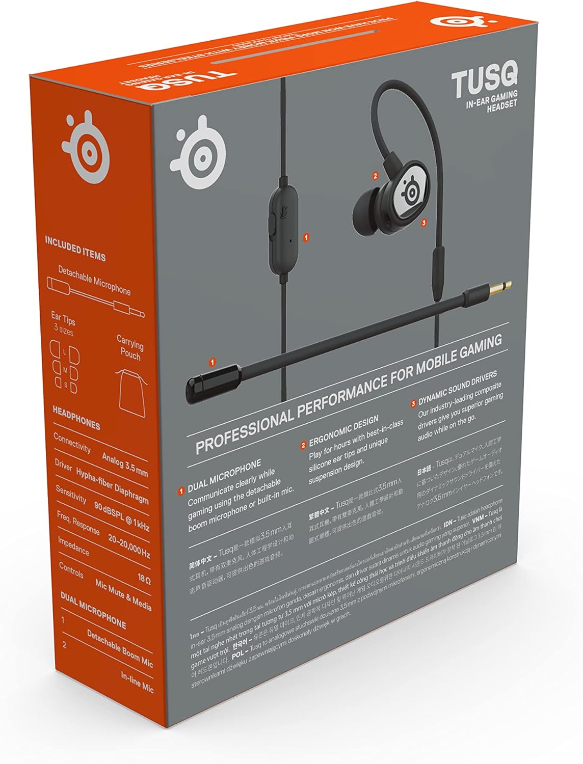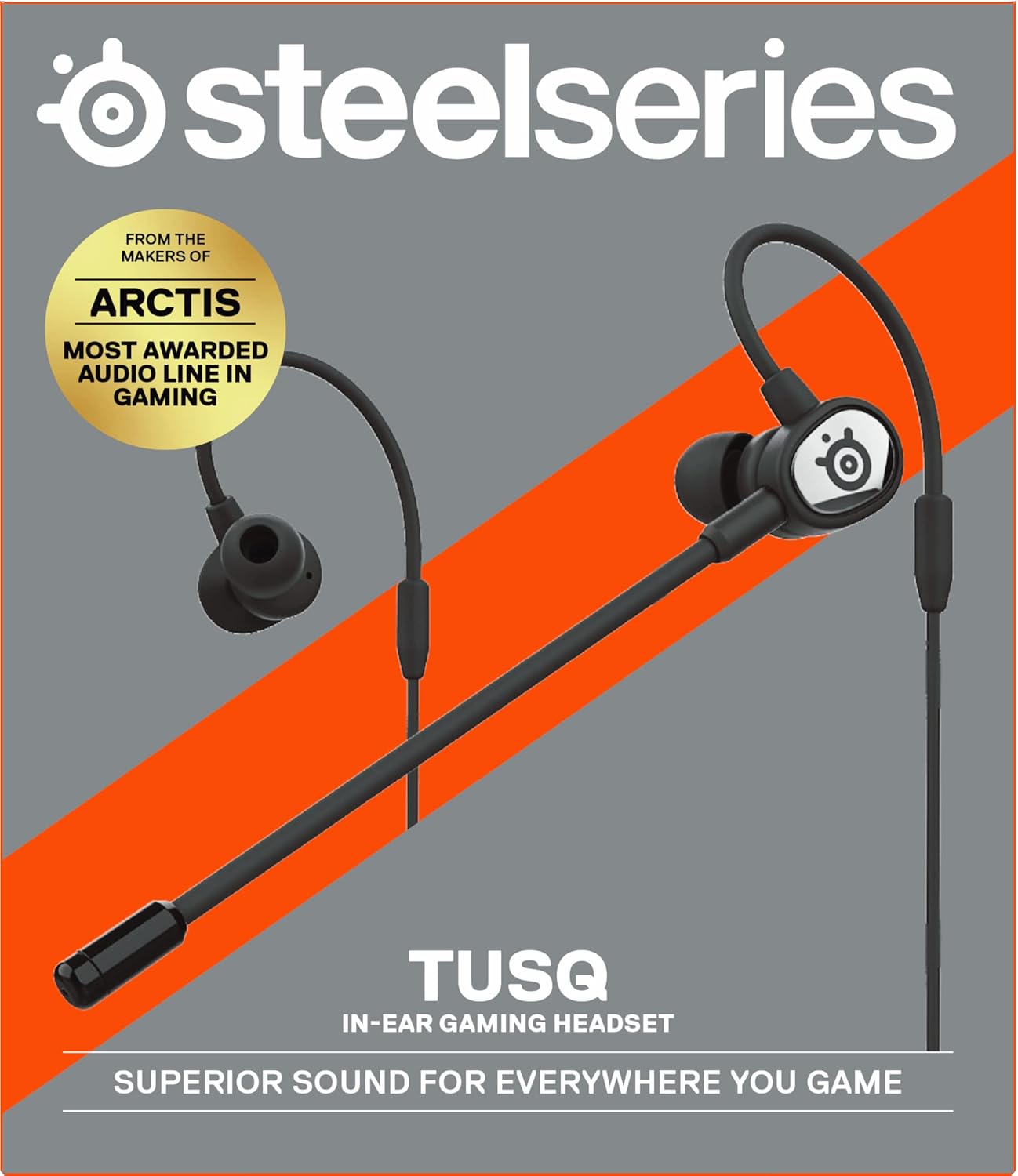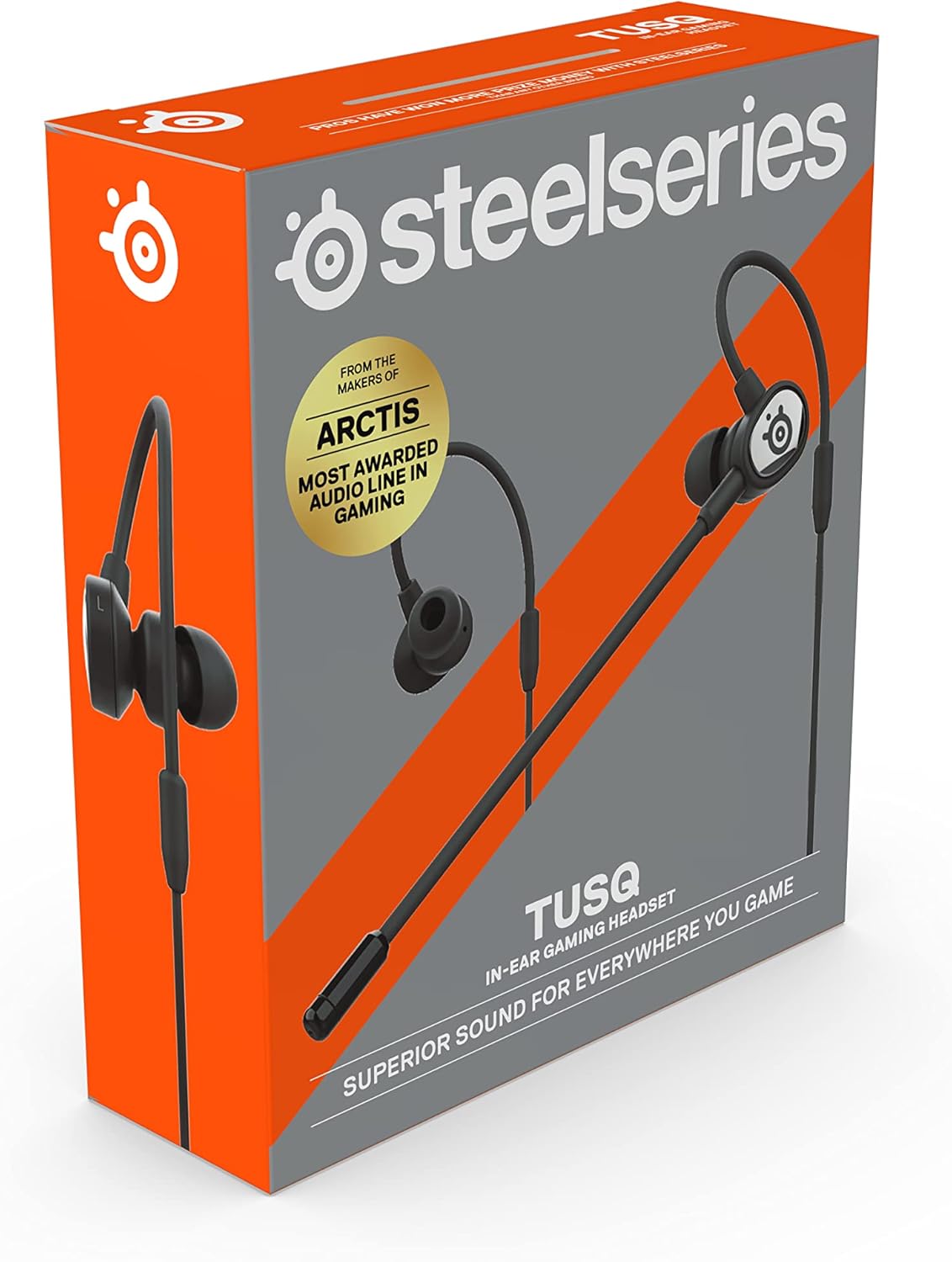 SteelSeries Tusq In-Ear Mobile Gaming Headset – Dual Microphone with Removable Sleeves – Ergonomic Suspension Headphones for Mobile Devices – Black